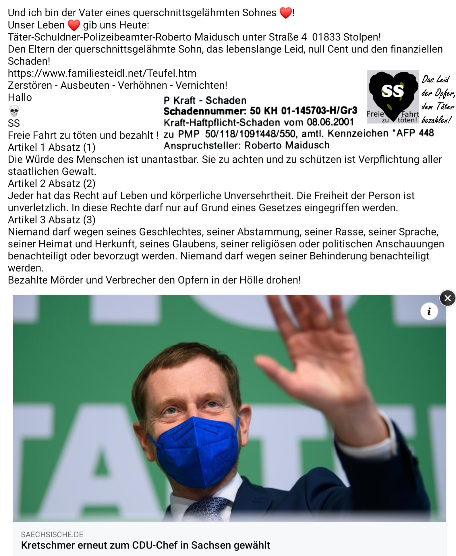 Straftäter, Schädiger und Schuldner: Polizist Roberto Maidusch unter Straße 4 01833 Stolpen!