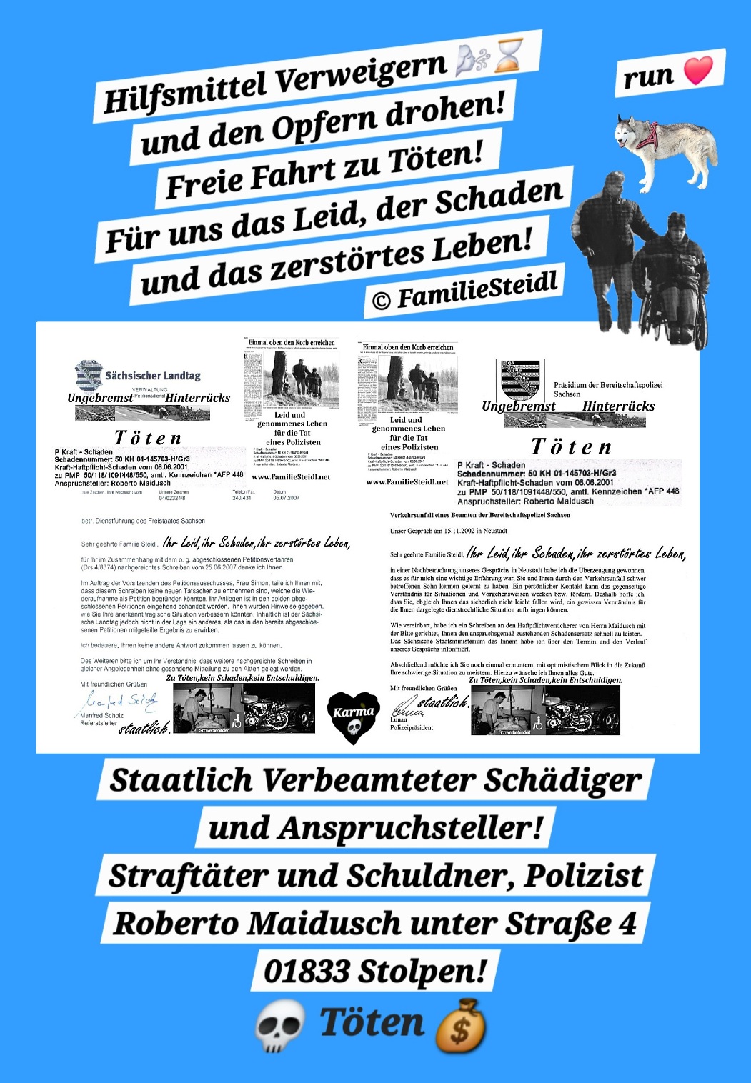 Uns das Leid, den Schaden und das zerstörte Leben!